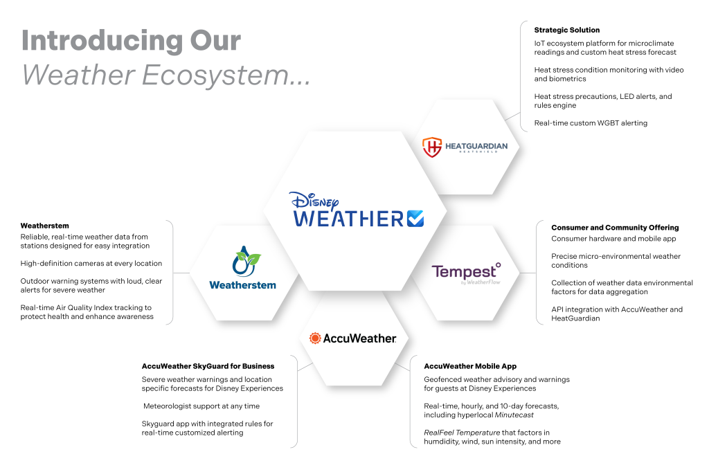 Through co-development of advanced technology with Disney SyncLink licensees and the use of macro & microclimate weather stations, we’ve established new capabilities that provide heat stress conditions monitoring, realtime alerting, heat stress precautions, and catered forecasts.